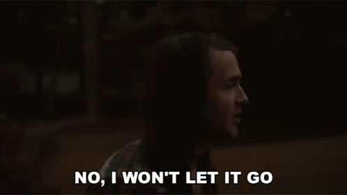 A man with long hair in the dark emphatically states, 'No, I won't let it go,' referencing Mayday Parade.