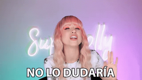 Superholly, with pink hair, expresses 'I wouldn't hesitate for a second' in front of her neon sign.