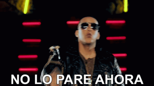 Daddy Yankee performs 'No Lo Pare Ahora,' gesturing energetically in a music video.