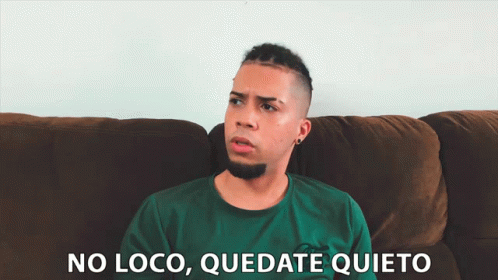 Javi Ghan on a couch, telling someone to stay still and calm down with an on-screen text overlay.