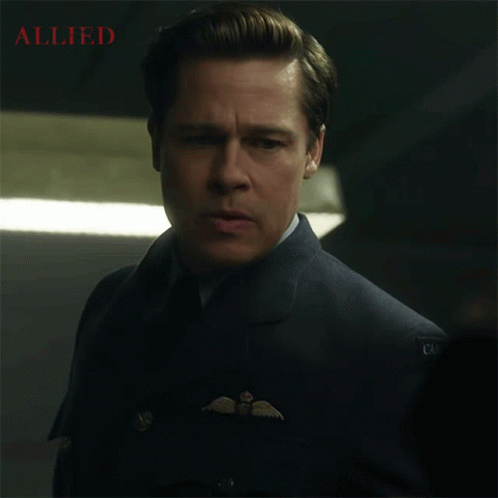 Brad Pitt as Max Vatan, in his military uniform, sternly says 'No' in a scene from the movie Allied.