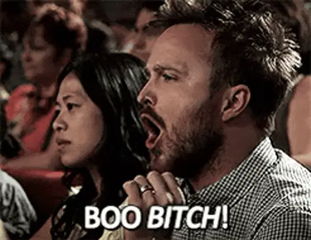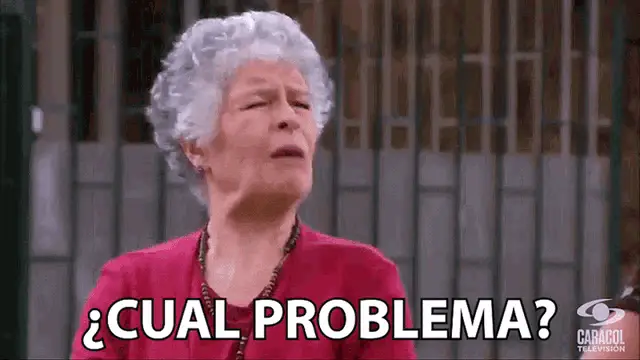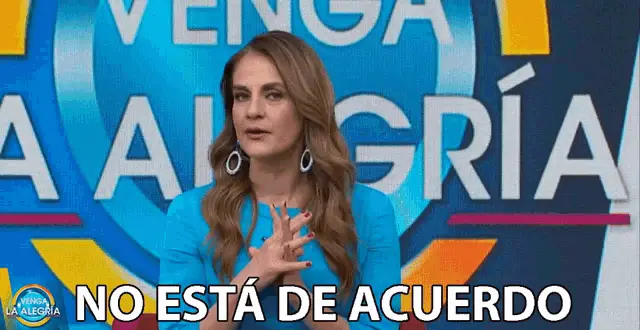 Maria Margarita Giraldo as Dona Ruca, looking skeptical at a table with a drink and cutlery.