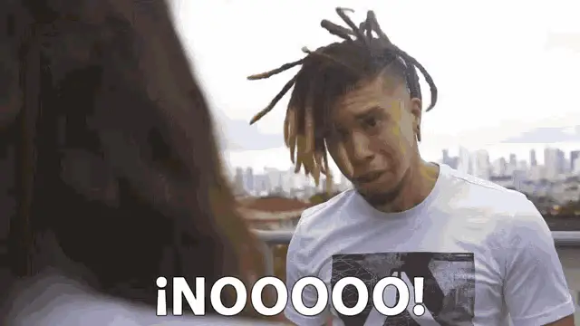 Mafer, played by Lucia Gomez Robledo, emphatically says 'No, No, No' with a disapproving expression.