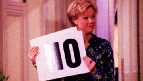 Sabrina from Sabrina the Teenage Witch holds up a sign changing from '10' to 'NO' repeatedly.