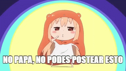 Anime girl pouting with text 'No Papa, No Podes Postear Esto' (No Dad, You Can't Post This).