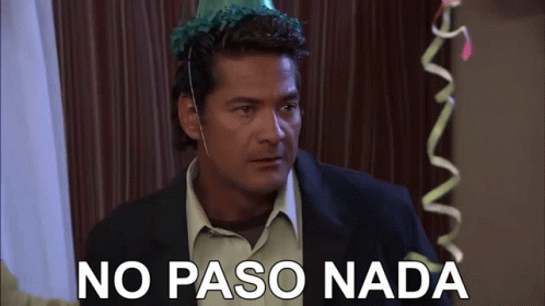 A man from 'La Rosa De Guadalupe' wearing a party hat, reassuring with 'No Paso Nada' (Nothing Happened).