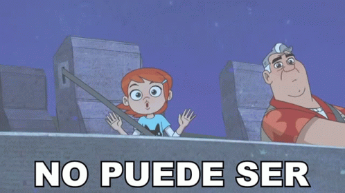 Gwen and Grandpa Max react with shock, exclaiming 'No Puede Ser!' in this animated scene.