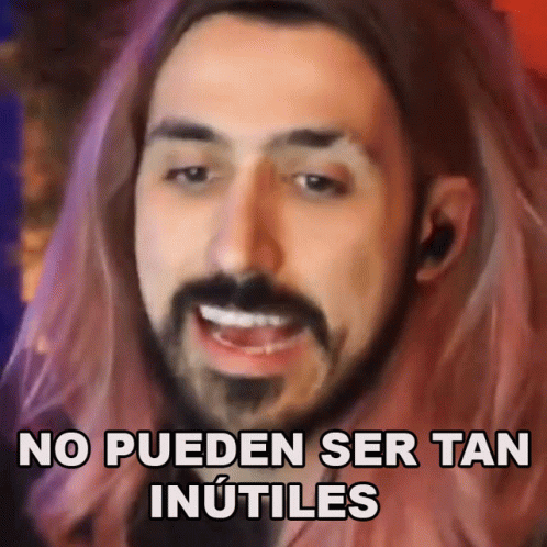 Man with pink hair reacts to 'No Pueden Ser Tan Inutiles' during a gaming stream, showing various expressions.