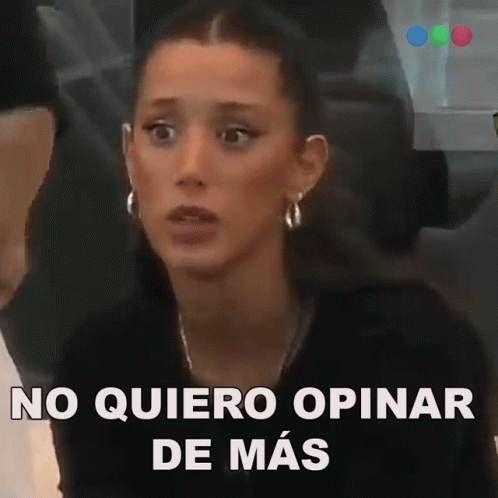 Juliana from Gran Hermano says "No Quiero Opinar De Mas" (I don't want to comment further) with a serious expression.