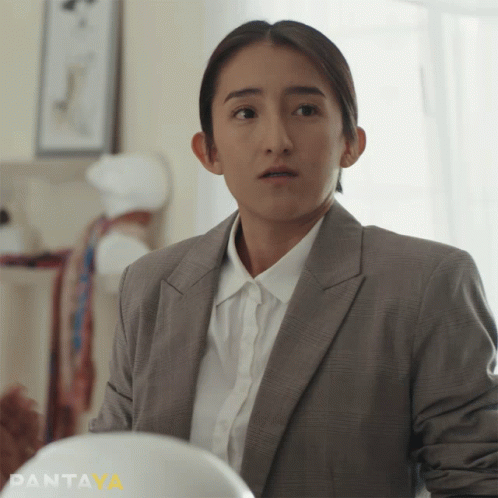 Ana, dressed in a suit, shows a confused and unsure expression, looking around with a puzzled gaze.