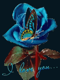 A beautiful blue rose with a butterfly, sparkling with glitter, and the heartfelt message 'I love you...' for Noah Miller.