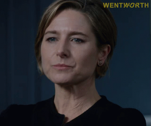 Bridget Westfall nods in a close-up shot from the TV series Wentworth, showing a serious expression.