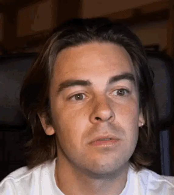 Noel Miller from Tiny Meat Gang, wearing a hat and green shirt, says 'GET EM' directly to the camera.