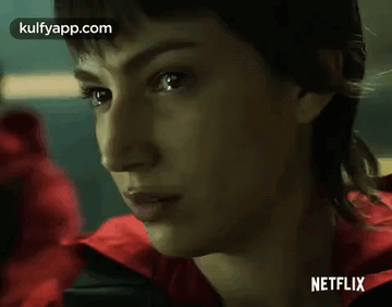 Belén Cuesta as Manila from Money Heist giving a firm 'no' reaction, with the Netflix logo visible.