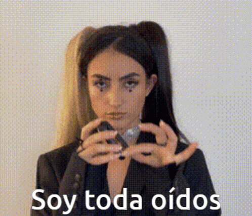 A woman in a black suit holds a Nokia phone, saying 'Soy toda oídos' (I'm all ears) in a meme format.