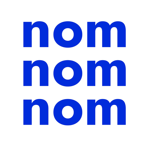 The 'nom nom nom' logo for Nom Ph Philippines, featuring blue text on a clean white background.