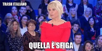 Ambra Angiolini from Non è la Rai making the 'porta male' gesture, signifying bad luck.