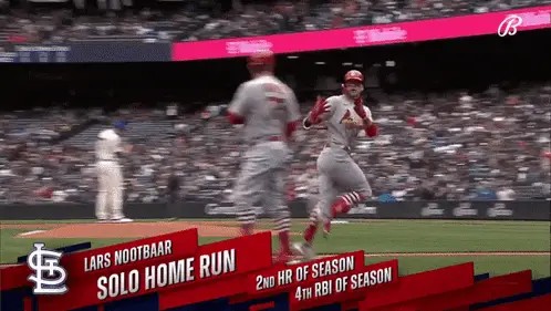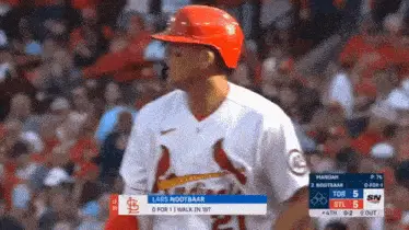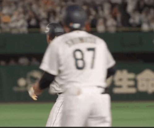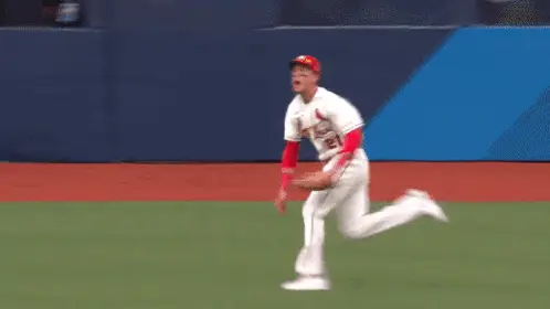 Baseball player Nootbaar, wearing a 'JAPAN 23' jersey, celebrates enthusiastically on the field.