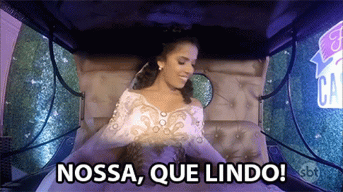 Catherynne in a beautiful wedding dress, sitting in a carriage, exclaiming 'Wow, how beautiful!' at her wedding.