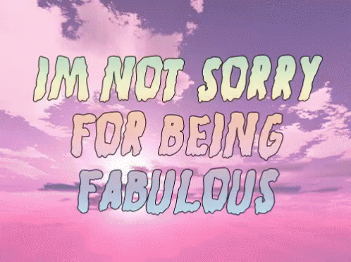 Animated text 'I'm Not Sorry For Being Fabulous' displayed on a vibrant pink and purple gradient background.