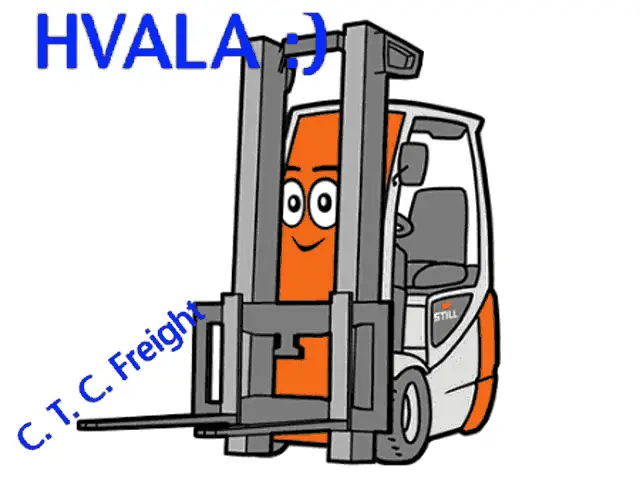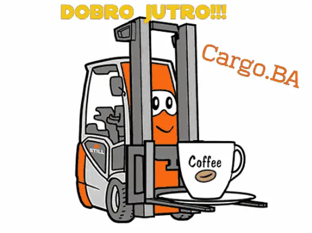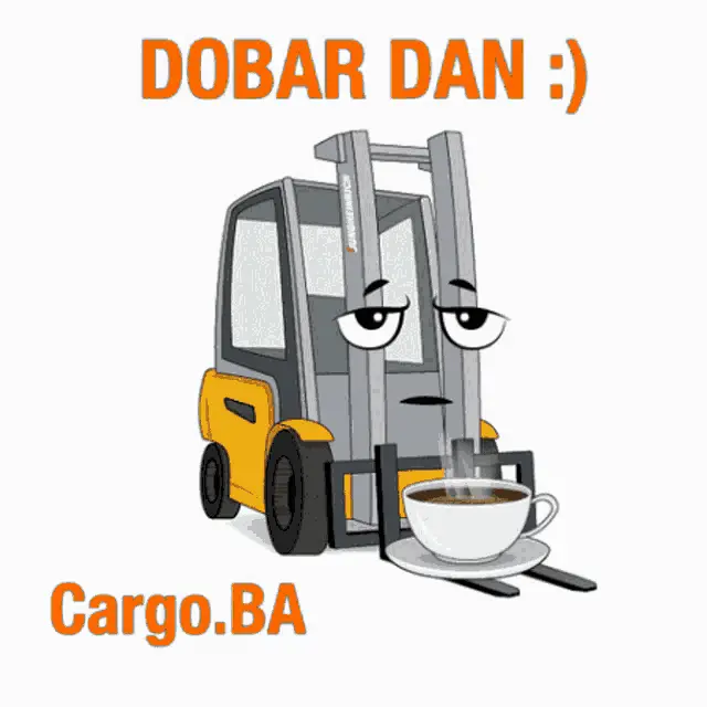 Animated forklift with big eyes wishing 'Happy New Year' from Cargo.BA, surrounded by festive confetti.