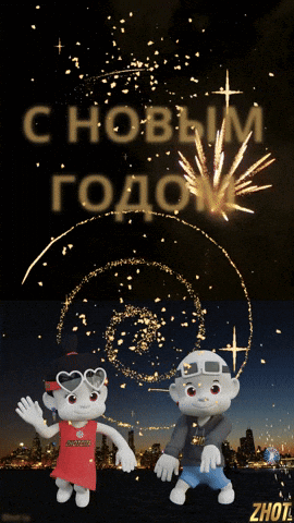 a couple of stuffed animals are dancing in front of a fireworks display that says ' choubim godo ' on it
