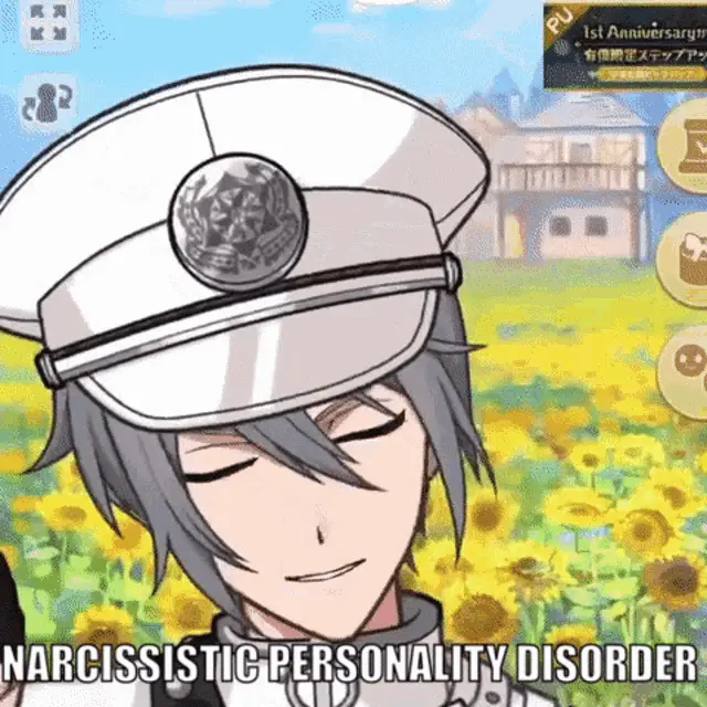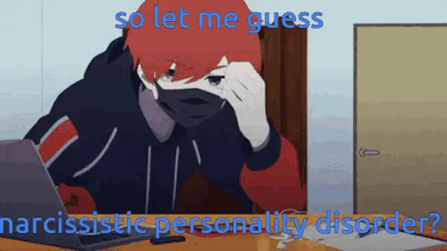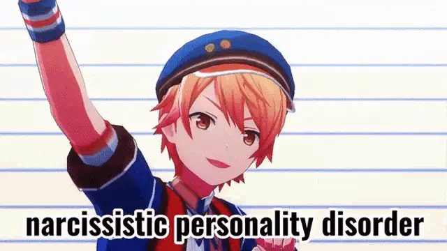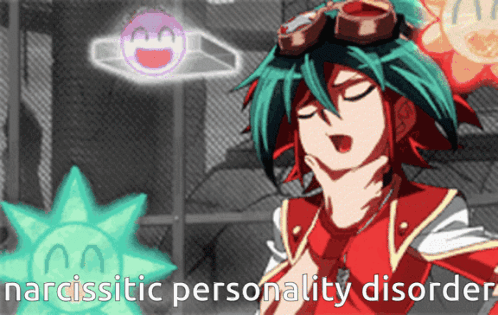 a cartoon character with a narcissistic personality disorder written on the bottom