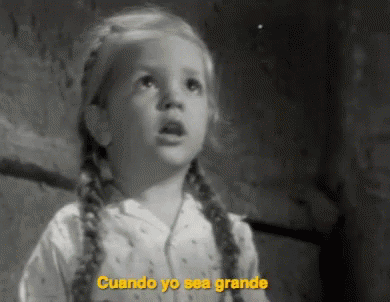 Nueztoy Tucita, a little girl with braids, declares in a black and white scene that she will kill someone when she grows up.