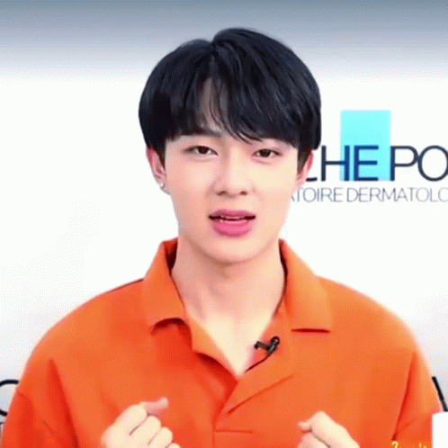 Nunew in an orange shirt, speaking and showing a determined expression, embodying a fighting spirit.