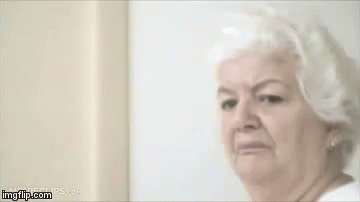 An elderly nurse with white hair expresses disgust with a disapproving frown.