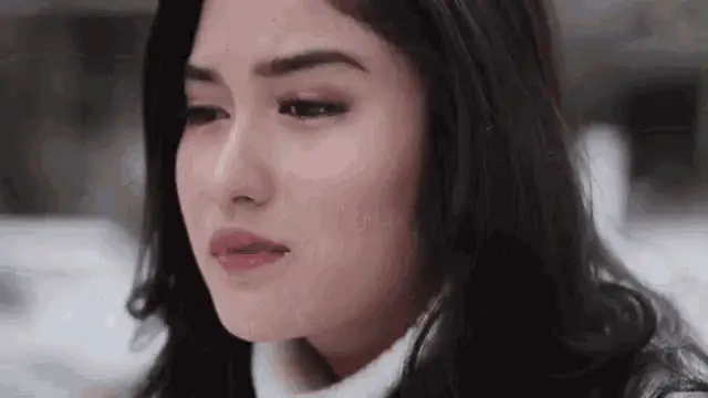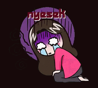 A sad cartoon girl kneels and cries, expressing the feeling of 'nyesek' (heartbreak/deep sadness).