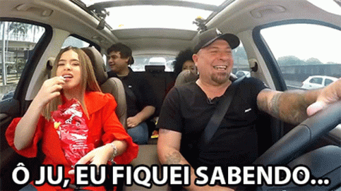 Maisa and friends in a car, laughing, eating snacks, and gossiping. O Ju, Eu Fiquei Sabendo!