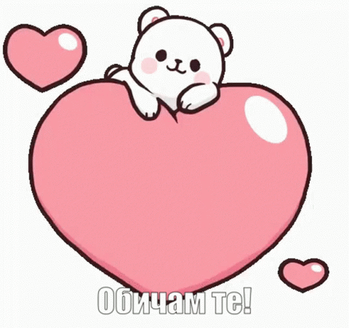 A cute cartoon bear sits on a large pink heart with 'I love you!' text.
