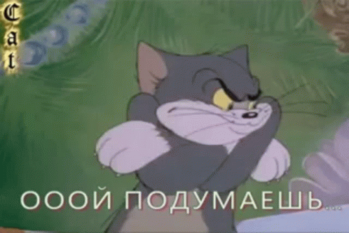 Tom the Cat from Tom and Jerry crosses his arms with a smug expression, with Russian text 'Oh, big deal...' below.