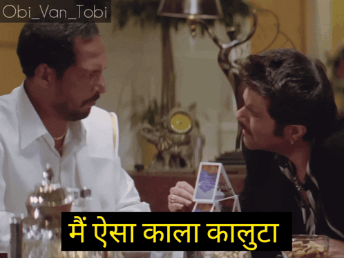 two men are sitting at a table and one of them is wearing earrings