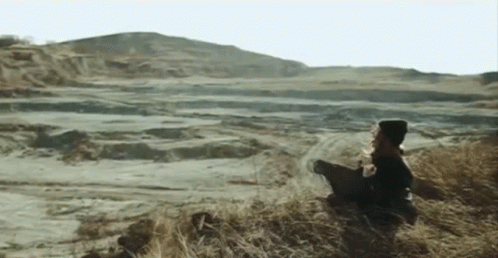 Dakooka, looking sad and disappointed, sits on a hill overlooking a vast, barren landscape.