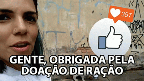A woman expresses gratitude for food donations, with an animated thumbs-up icon and a rising like counter.