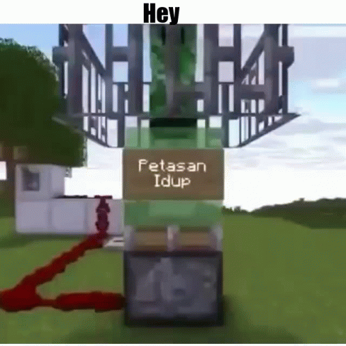 Odo Kentang appears in Minecraft with a sign displaying 'Hey Petasan Idup' (Hey Live Firecracker).