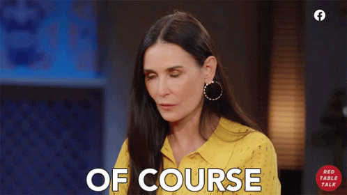 Demi Moore speaks the words 'Of course' during an appearance on Red Table Talk, wearing a yellow shirt.