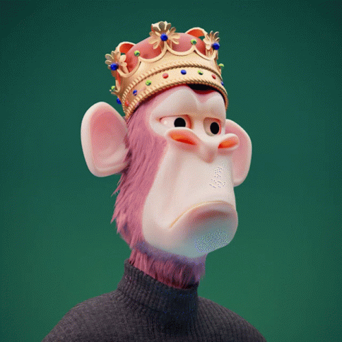 Offshoot3d's 3D animated Bored Ape (BAYC) character, the Kombucha Ape, wearing a crown and turtleneck.