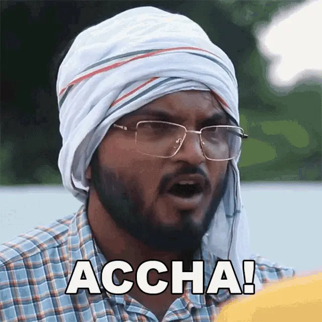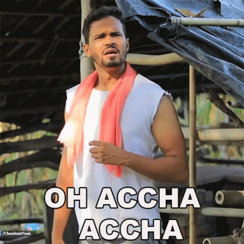Sonu Chauhan reacts with 'Oh Accha Accha' (Oh Okay Okay), expressing understanding or realization.