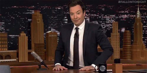Jimmy Fallon smiles and greets the audience from his desk on The Tonight Show.
