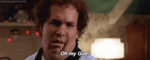 Ryan Reynolds as Chris Brander makes a funny, shocked face, exclaiming 'Oh my God!'