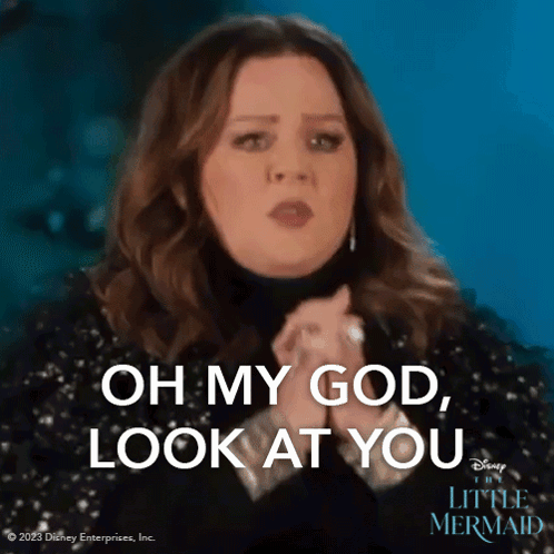 Melissa McCarthy as Ursula from The Little Mermaid exclaims, 'Oh my god, look at you!'