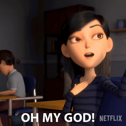 Mary Wang from Trollhunters reacts with a shocked 'Oh My God!' expression, hand on chest, in this animated scene.
