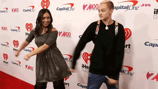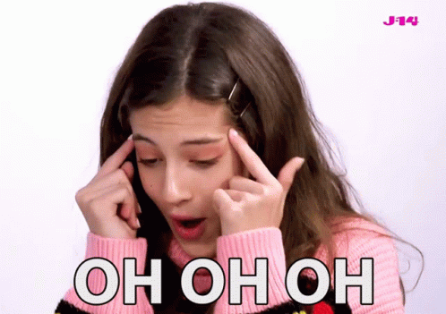 Eliza Pryor with hands on her head, looking thoughtful, with 'OH OH OH' text.