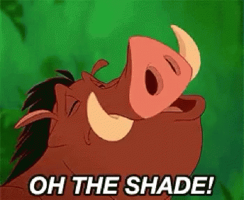 Pumbaa from The Lion King reacts dramatically, exclaiming 'Oh The Shade!' in this iconic animated moment.