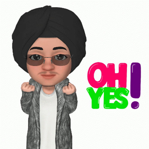 Animated avatar with a turban and sunglasses reacts with 'OH YES!' while covering its ears.