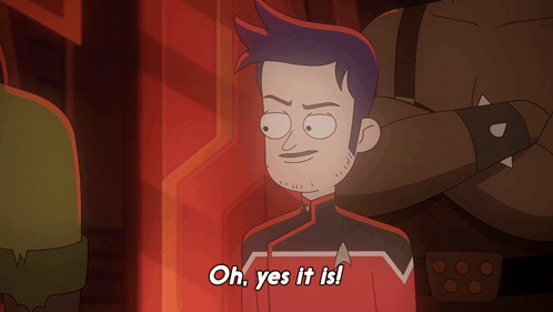 Ensign Brad Boimler from Star Trek: Lower Decks confidently declares, 'Oh, yes it is!'