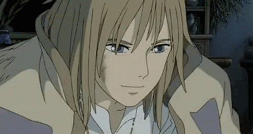 Howl from Howl's Moving Castle smiles gently, looking content.